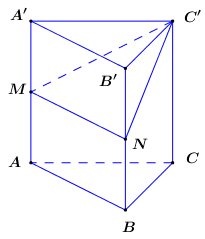 - Phân chia \({V_{ABCMNC'}} = {V_{ABC.A'B'C'}} - {V_{C'.A'B'NM}}\).
