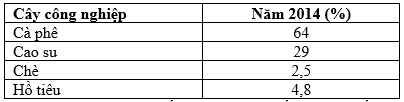 Loại cây công nghiệp chiếm tỉ trọng lớn nhất trong cơ cấu diện tích trồng cây công nghiệp của Tây Nguyên năm 2014 là