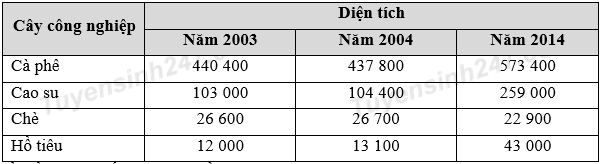Nhận định nào không đúng về diện tích trồng cây công nghiệp của Tây Nguyên giai đoạn 2003 – 2014?