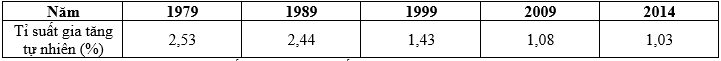Năm có tỉ suất gia tăng dân số tự nhiên cao nhất trong giai đoạn từ 1979 – 2014 là