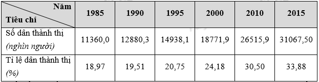 Cho bảng số liệu về số dân thành thị và tỉ lệ dân thành thị của nước ta qua các