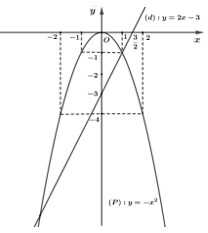 Cho parabol \(\left( P \right):\,\,y = - {x^2}\) và đường thẳng \(\left( d \right):y = 2x - 3\) a) Vẽ