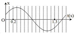 Một chất điểm dao động điều hòa có đồ thị biểu diễn sự phụ thuộc của li độ x vào thời gian t như hình bên. Tại thời điểm t = 0,2s, chất điểm có li độ 3cm. Ở thời điểm t = 1,3s, gia tốc của chất điểm có giá trị là