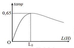 Đặt điện áp \(u = {U_0}co{\rm{s100}}\pi {\rm{t}}\left( V \right)\) vào hai đầu đoạn mạch AB gồm điện trở thuần R mắc nối tiếp với cuộn dây có điện trở \(r = 50\Omega \), hệ số tự cảm L thay đổi được. Điện áp tức thời giữa hai đầu cuộn dây và hai đầu đoạn mach AB lệch pha nhau góc \(\varphi \). Hình bên biểu diễn sự phụ thuộc của \(\tan \varphi \) theo L. Giá trị của \({L_0}\) là