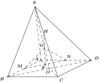 Cho hình chóp \(S.ABCD\) có đáy là hình bình hành. Gọi \(M,\,\,N\) lần lượt là trung điểm của