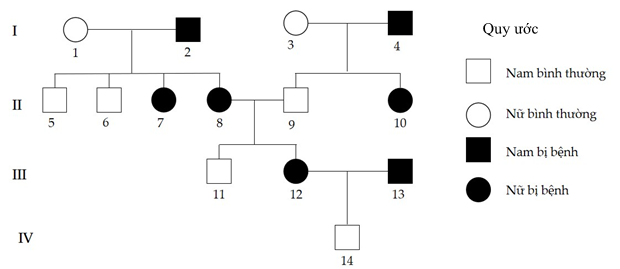 II. Cặp vợ chồng ở thế hệ III sinh người con thứ hai là con gái không bị bệnh với xác suất 12,5%.