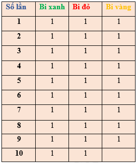 Có thể lập bảng để thấy số bi mà Hải cho vào mỗi lần, cho đến khi có được 10 bi đỏ thì dừng lại ta tìm được số bi ít nhất cần cho vào hộp.