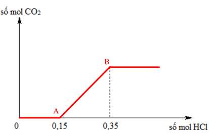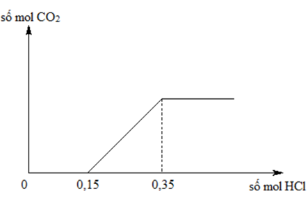 Cho từ từ dung dịch HCl vào dung dịch có chứa a mol NaHCO3 và b mol Na2CO3. Số mol khí CO2 thu được phụ thuộc vào số mol HCl được biểu diễn trên đồ thị sau: