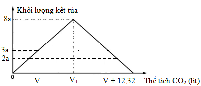 Hấp thụ hoàn toàn khí CO2 vào dung dịch Ca(OH)2 aM, khối lượng kết tủa tạo ra phụ thuộc vào thể tích khí CO2 (đktc) được biểu diễn bằng đồ thị sau: