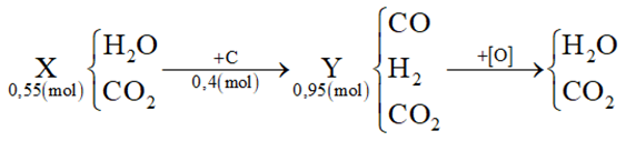Dẫn 0,55 mol hỗn hợp X (gồm hơi nước và khí CO2) qua cacbon nung nóng đỏ thu được 0,95 mol hỗn