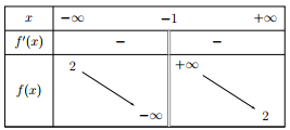 Cho hàm số \(f\left( x \right) = \dfrac{{ax + 1}}{{bx + c}}\,\,\left( {a,b,c \in \mathbb{R}} \right)\) có bảng