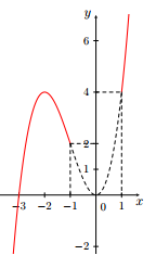 Hình vẽ bên là đồ thị của hàm số \(y = {x^3} + 3{x^2}\). Tìm tất cả giá trị của tham số \(m\) để phương trình \(\sqrt {3{x^2} - 3} = \sqrt {m - {x^3}} \) có hai nghiệm thực phân biệt.