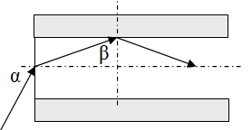 Một sợi quang hình trụ gồm phần lõi có chiết suất \(n = 1,51\) và phần vỏ bọc có chiết suất \({n_0} = 1,41\). Trong không khí, một tia sáng tới mặt trước của sợi quang tại điểm O (O nằm trên trục của sợi quang) với góc tới α rồi khúc xạ vào phần lõi (như hình bên). Để tia sáng chỉ truyền trong phần lõi thì giá trị lớn nhất của góc \(\alpha \) gần nhất với giá trị nào sau đây?