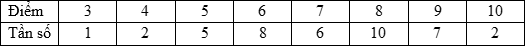 Điểm kiểm tra học kì môn Toán của các học sinh lớp 10A cho ở bảng dưới đây: