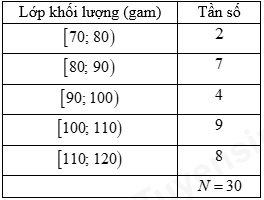 Khối lượng của \(30\) củ khoai tây thu hoạch ở một nông trường được cho ở bảng sau: Tần