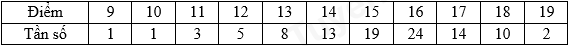 Trong một kì thi học sinh giỏi toán (thang điểm là \(20\)), kết quả được cho ở bảng sau: