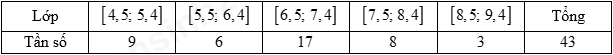 Kết quả khảo sát ở \(43\) tỉnh (đơn vị: %) ghi lại số phần trăm những trẻ em mới sinh có trọng lượng dưới \(2500\) gam được cho ở bảng phân bố tần số dưới dây: