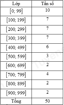 Điều tra về số tiền mua sách (đơn vị: nghìn đồng) trong một năm của 50 sinh viên, người ta thu được bảng số liệu thống kê sau: