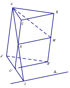 Cho hình lăng trụ \(ABC.A'B'C'\). Gọi \(M,\,\,N\) lần lượt là trung điểm của \(BB'\) và \(CC'\).