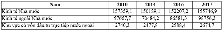 (Nguồn: Niên giám thống kê Việt Nam 2017, NXB Thống kê, 2018)