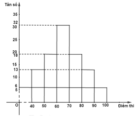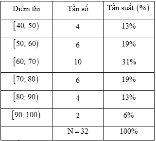 Điểm thi của 32 học sinh trong kì thi Tiếng Anh (thang điểm 100) như sau: Khi đó, biểu đồ tần