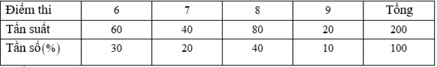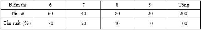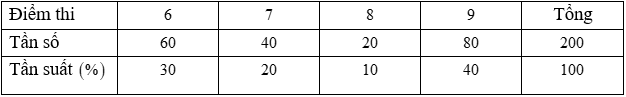 Cho biểu đồ tần suất hình quạt biểu diễn cho điểm thi môn Anh Văn của \(200\) học sinh tại một Trung tâm ở Hà Nội: