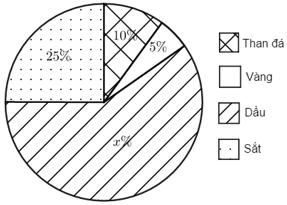 Biết rằng giá trị xuất khẩu của nước ta về dầu là \(450\) triệu USA. Hỏi giá trị xuất khẩu vàng là bao nhiêu triệu USA?
