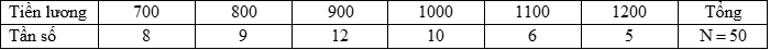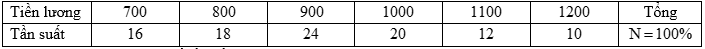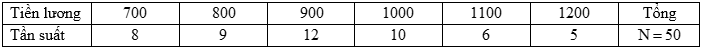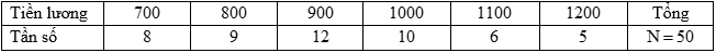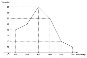 Cho biểu đồ đường gấp khúc tần suất về tiền lương (nghìn đồng) hàng tháng của \(50\)