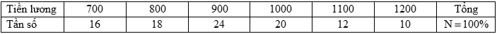Quan sát biểu đồ xác định được tỉ số phần trăm số công nhân của từng nhóm so với tổng số công nhân. Từ đó tính được số công nhân của từng nhóm và lập bảng tần số.