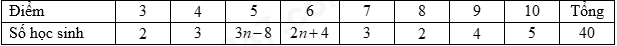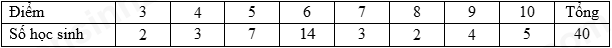 Điểm bài kiểm tra một tiết môn Toán của \(40\) học sinh lớp \(10A\) được thống kê bằng bảng số liệu thống kê sau: