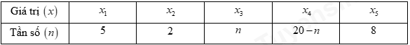 Có tất cả bao nhiêu số tự nhiên \(n\) để \({M_0} = {x_4}\) là Mốt duy nhất của bảng số liệu thống kê trên?
