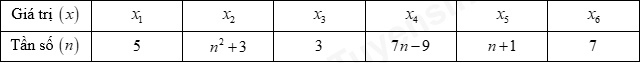Cho bảng phân bố tần số sau: Gọi \(S\) là tập hợp tất cả các số \(n\) nguyên dương sao cho