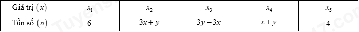 Cho bảng phân số tần số: Với \(x,\,\,y\) là các số tự nhiên. Có tất cả các cặp số \(\left(