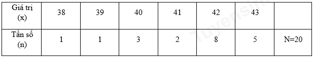 Trong đợt kiểm tra sức khỏe số cân nặng của 20 học sinh nữ lớp 7A được ghi lại trong bảng sau (đơn vị khối lượng: kg)
