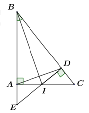 Cho tam giác \(ABC\) vuông tại \(A\) . \(BI\) là tia phân giác của góc \(ABC\) ( \(I\) thuộc \(AC\) . Kẻ \(ID\) vuông góc với \(BC\) tại \(D\) .