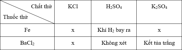 Bằng phương pháp hóa học, không dùng chất chỉ thị hãy phân biệt 3 dung dịch: KCl, H2SO4, K2SO4