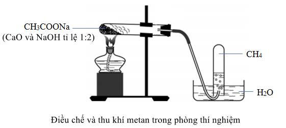 Thí nghiệm điều chế metan trong phòng thí nghiệm (như hình vẽ). Hãy cho biết phát biểu sau đây đúng hay sai (không cần giải thích)?