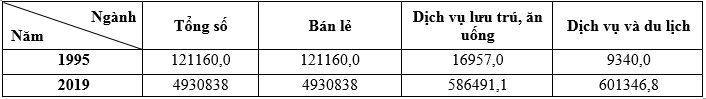 Cho bảng số liệu: TỔNG MỨC BÁN LẺ HÀNG HÓA VÀ DOANH THU DỊCH VỤ TIÊU DÙNG THEO GIÁ THỰC TẾ