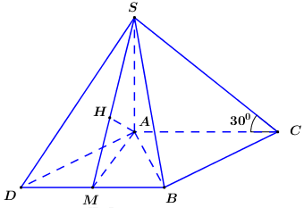 - Sử dụng tỉ số lượng giác của góc nhọn trong tam giác vuông tính \(SA\). Sử dụng hệ thức lượng trong tam giác vuông tính \(AH\).