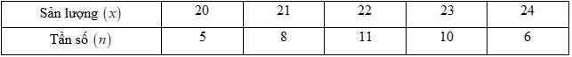 Sản lượng lúa của \(40\) thửa ruộng thí nghiệm có cùng diện tích được trình bày trong bảng tần số sau đây: (đơn vị: tạ)