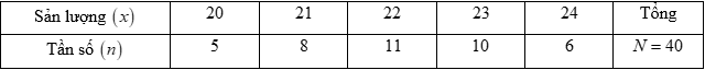 Sản lượng lúa của \(40\) thửa ruộng thí nghiệm có cùng diện tích được trình bày trong bảng