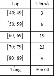 Một cửa hàng bán sách thống kê số tiền (đơn vị: nghìn đồng) mà \(60\) khách hàng mua sách ở cửa hàng trong một ngày. Số liệu được ghi trong bảng phân bố tần số sau: