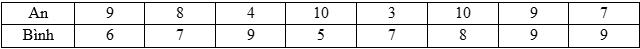 Điểm kiểm tra môn Toán của hai học sinh An và Bình được ghi lại theo bảng sau: