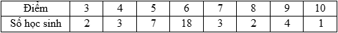 Cho bảng số liệu ghi lại điểm kiểm tra \({\rm{1}}\) tiết môn Toán của học sinh lớp 10A: Kích