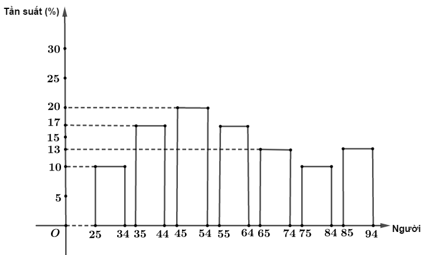 Cho biểu đồ tần suất hình cột biểu diễn số người đến đọc sách vào buổi tối trong \(30\) ngày của tháng vừa qua như sau:
