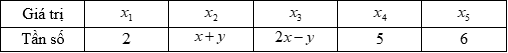 Cho bảng phân bố tần số: Với \(x,\,\,y\) là các số tự nhiên. Có tất cả bao nhiêu cặp số