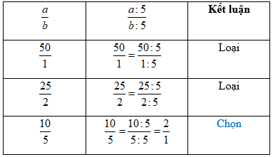 Tích của tử số và mẫu số của một phân số lớn hơn 1 bằng 50. Khi chia cả tử số và mẫu số của phân số đó cho 5 ta được một phân số tối giản. Tìm phân số đó.