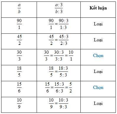Tích của tử số và mẫu số của một phân số lớn hơn 1 bằng 90. Khi chia cả tử số và mẫu số của phân số đó cho 3 ta được một phân số tối giản. Tìm phân số đó.