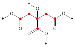 Nước ép chanh chứa khoảng 5% (khoảng 0,3 mol/lít) axit xitric (citric acid), điều này giúp chanh có vị chua, và độ pH của chanh từ 2-3. Axit xitric có công thức cấu tạo là: