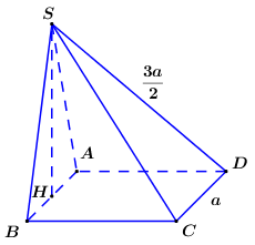 Cho hình chóp \(S.ABCD\) có đáy \(ABCD\) là hình vuông cạnh \(a\), \(SD = \dfrac{{3a}}{2}\), hình chiếu